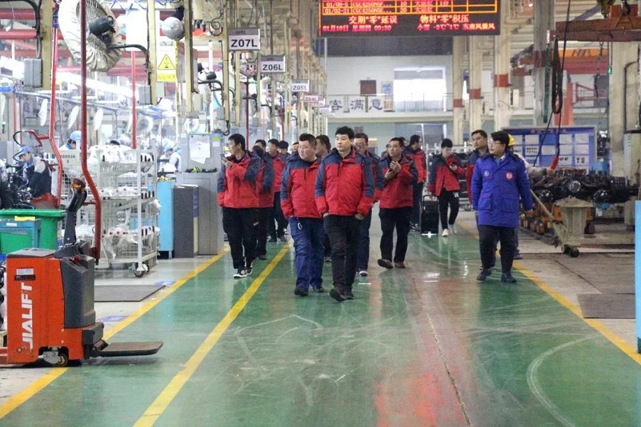 来自陕北区域的经销商朋友首先参观了大运重卡生产基地、大运新能源生产基地,其次乘坐大巴来到大运机车有限公司,并对公司的冲焊车间、涂装车间以及总装车间进行了参观考察。